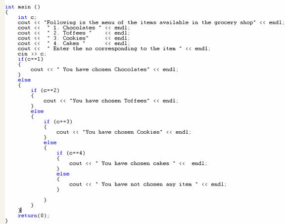 cout << “ You have chosen cookies” << endl;