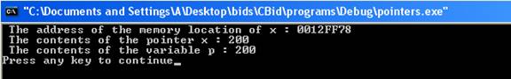has the same output 200 as the statement above. The contents of variable p is same as the contents of the pointer x.