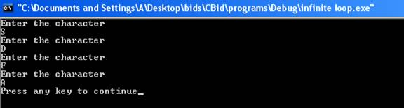 If the character is not ‘A’ loop continues. The loop will continue as long as user does not enter character ‘A’.